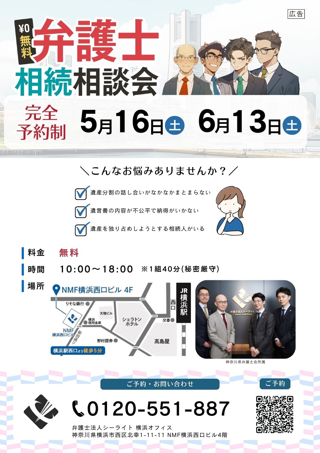 6月13日(土)開催 相続無料相談会【横浜オフィス】
