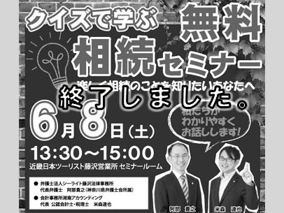 【終了】6月8日(土)クイズで学ぶ無料相続セミナー(近畿日本ツーリスト藤沢営業所 セミナールーム)