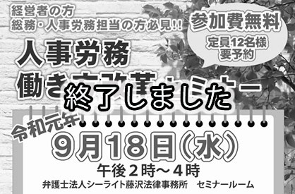 【終了】9月18日(水)人事労務・働き方改革セミナー(弁護士法人シーライト)
