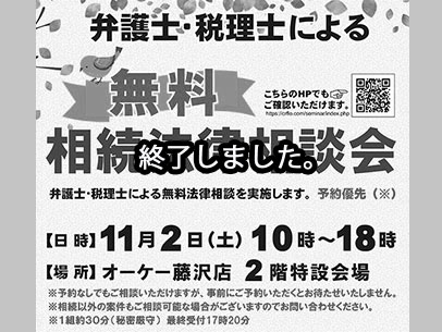 【終了】11月2日(土)相続無料相談会(オーケー藤沢店)