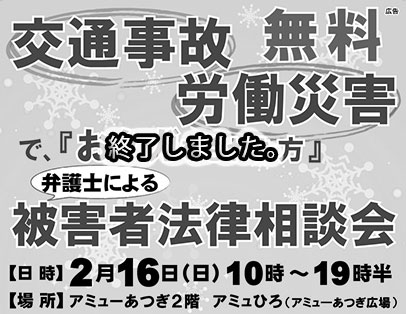【終了】2月16日(日)交通事故・労働災害被害者法律相談会(アミューあつぎ)