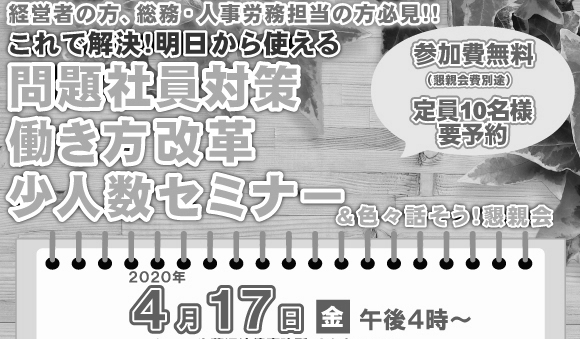 【中止】4月17日(金)問題社員対策働き方改革少人数セミナー(弁護士法人シーライト)
